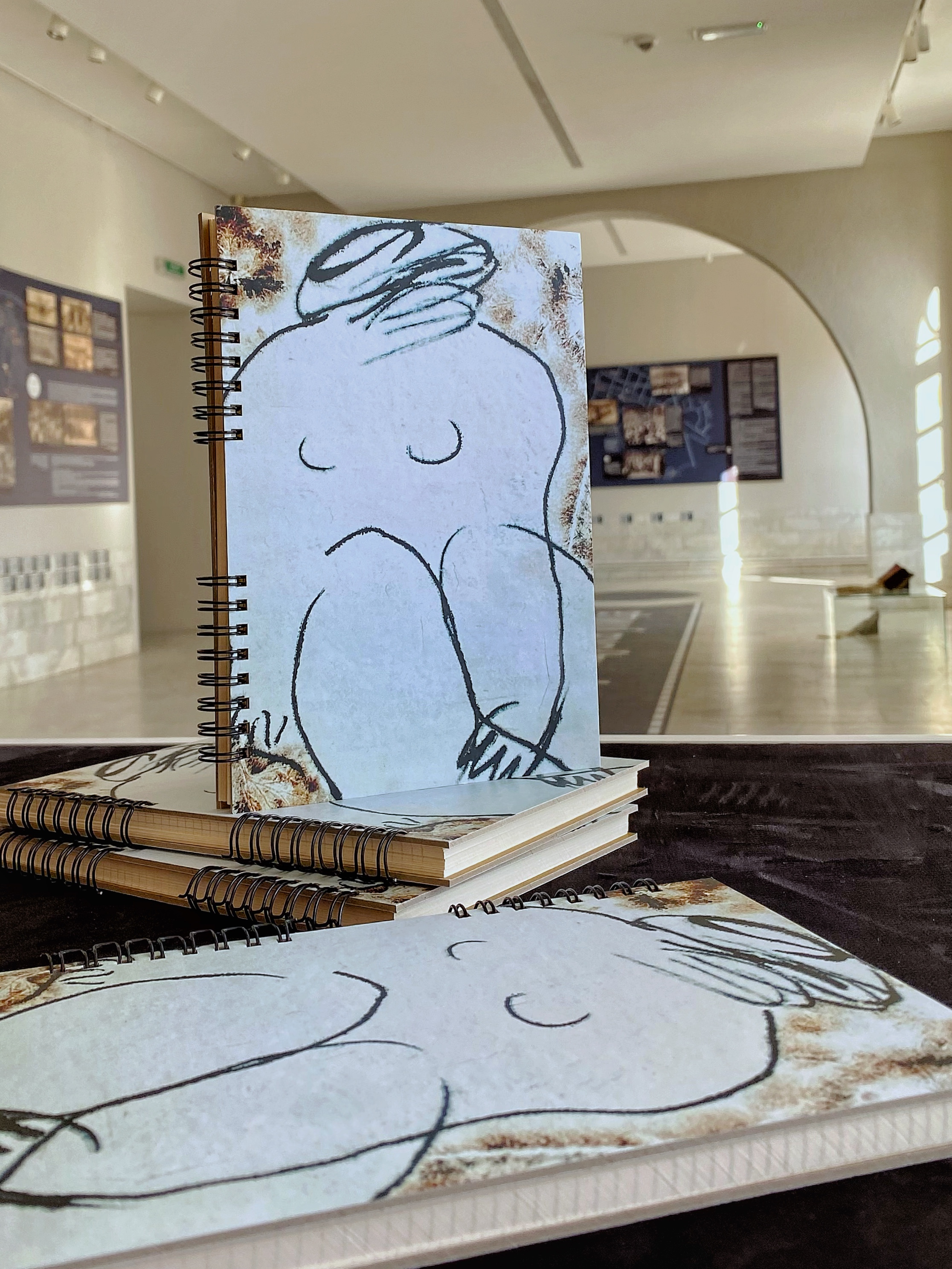 Нотес беж боје са репродукцијом дела „Акт у шуми“ Милоша Бајића, датираним у 1972. годину, из ликовне колекције Народног музеја у Смедеревској Паланци. Дизајнирано и произведено у Србији.