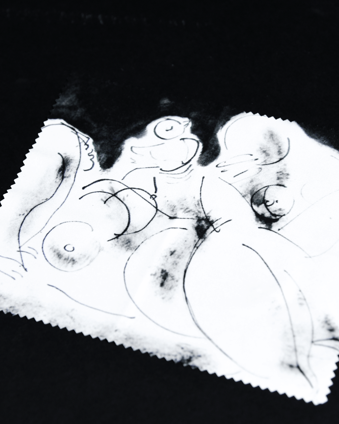 Микрофибер крпица за чишћење и брисање стакала са репродукцијом дела „Два акта са птицом“ Милоша Бајића, Датирано у 1974. годину, из ликовне колекције Народног музеја у Смедеревској Паланци. Дизајнирано и произведено у Србији.